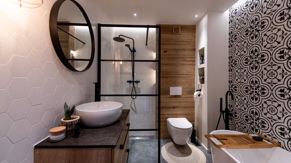 Хотя во многих интерьерах дерево используется почти на каждой поверхности ванной комнаты, например, в душе или рядом с ванной, керамическая плитка, безусловно, будет более практичным решением. Какая модель подойдет под деревянную ванную комнату?