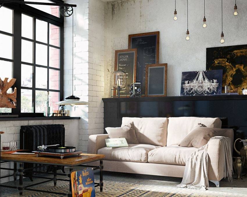 Кирпичная кладка часто используется при оформлении интерьера в стиле лофт