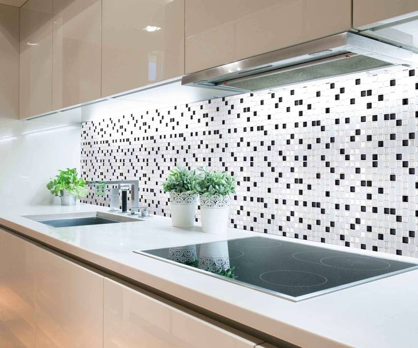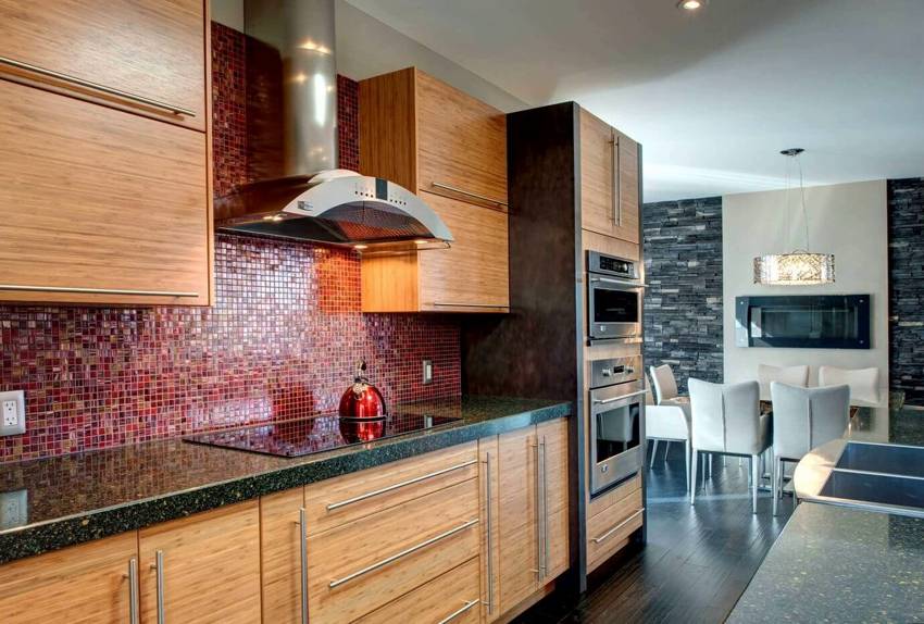 - фартук для кухни из мозаики – это также стильный элемент дизайна. Мозаичная стена может стать недостающим акцентом в помещении, которого как раз и не хватало.