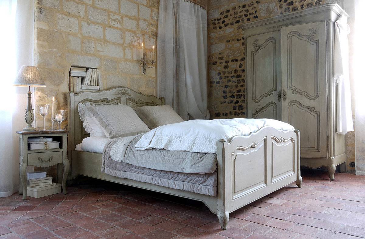 Поэтому при выборе мебели для спальни в стиле прованс акцентируют внимание на винтажности или приобретают искусственно состаренные гарнитуры. Натуральные отделочные материалы