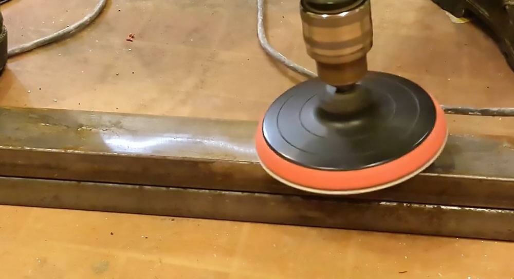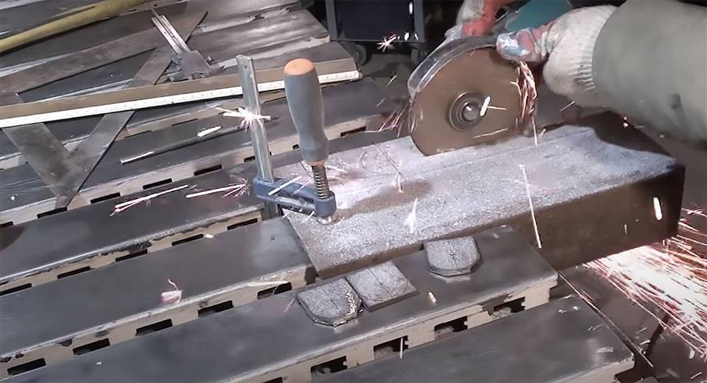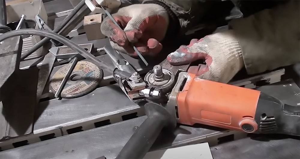Под столешницей в продолжение щели или параллельно ей нужно наварить стальной профиль размером 0,4*0,6 см или стальную полосу толщиной 0,4-,0,5 см. К ним позже прикрепится гриндер.