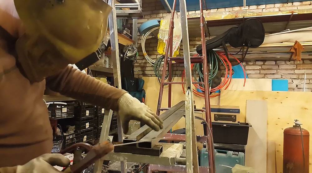 Между трубами устанавливают стальную полоску, которая будет выполнять функцию излома. Все элементы соединяют сваркой в единую конструкцию.