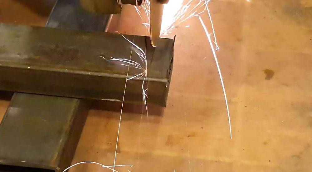 Для изготовления направляющего элемента используют 2 трубы длиной 130 см. Заготовки размечают с четырёх сторон простым карандашом, используя угольник, и обрезают болгаркой под нужные размеры.