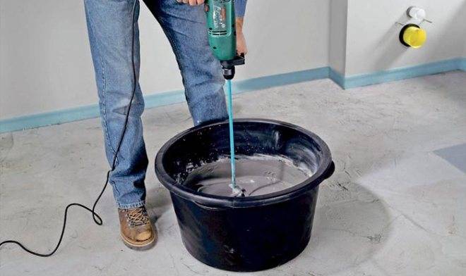 Размешивать клей лучше не вручную, а строительным миксером, дрелью с насадкой. Взбивают клей, пока он не обретет ровную структуру без комочков. Для дозревания выдерживают массу 10 минут, прикрыв ее сверху. После еще раз хорошо перемешивают Литокол. Далее он считается готовым к использованию.
