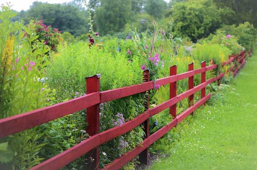 Деревянная изгородь в стиле кантри, выкрашенная в яркий цвет.