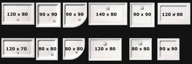 Приведем некоторые стандартные размеры поддонов для душевой кабины: