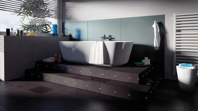 Из особенностей, на которые нужно ориентироваться при выборе ванны на подиуме в интерьере, можно выделить следующие: