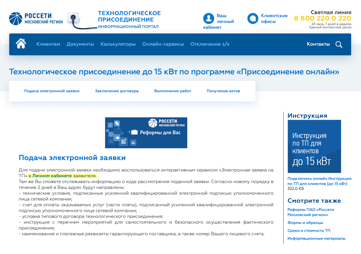 По закону заявление на подключение электричества мощностью до 150 кВт можно подать на сайте электросетевой компании. Интересный факт! Практически все сетевые компании предоставили возможность пользователям подавать заявки на подключение даже в том случае, когда мощностью электричества превышает 150 кВт.