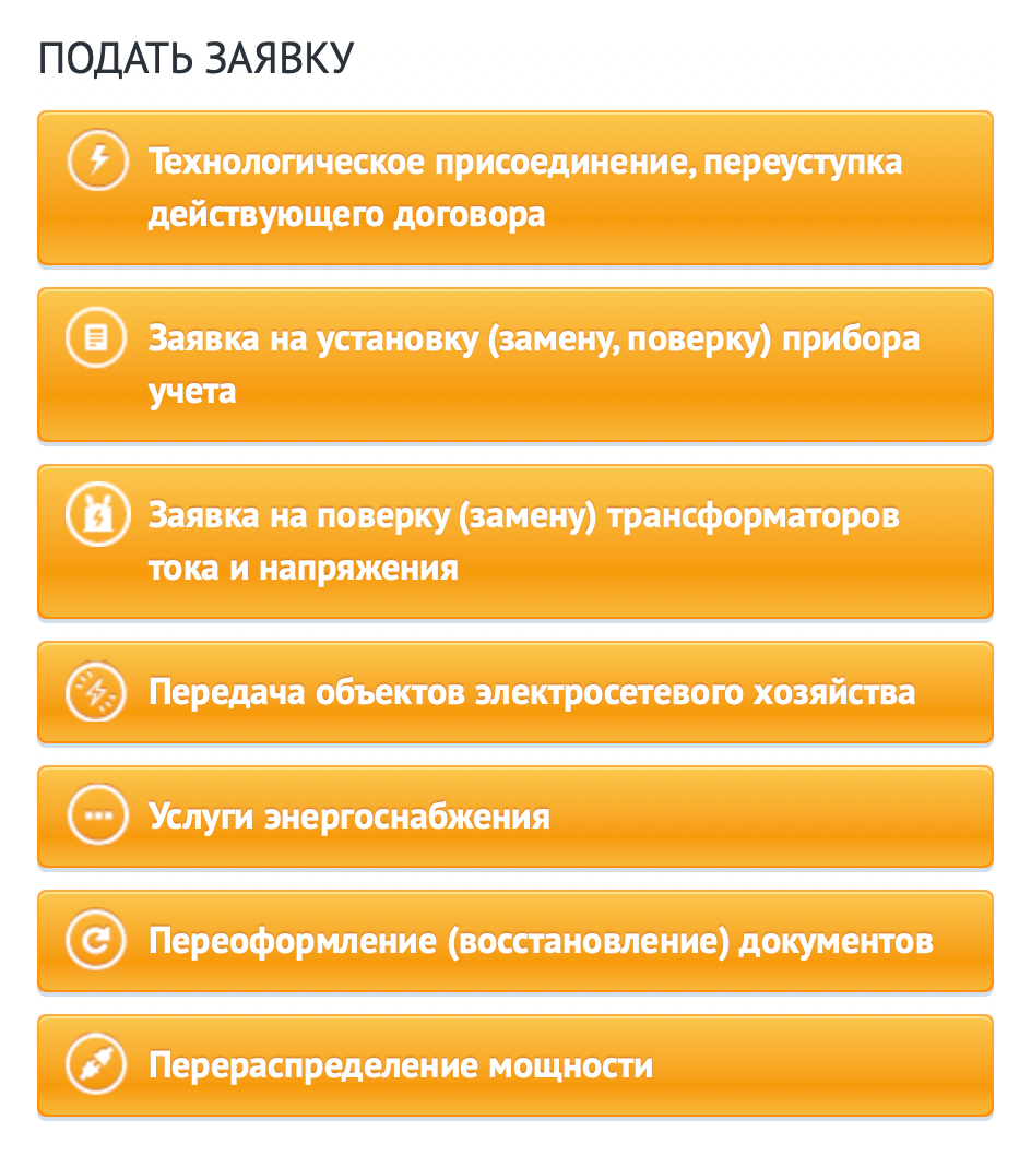 Помимо заявки на технологическое присоединение, в личном кабинете можно подать заявку на установку, замену, проверку счетчиков и другие услуги