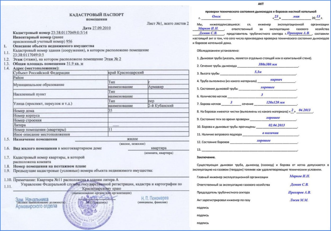 - Акт о техническом состоянии вытяжки или дымохода, составленный службой контроля вытяжных и дымоходных каналов.