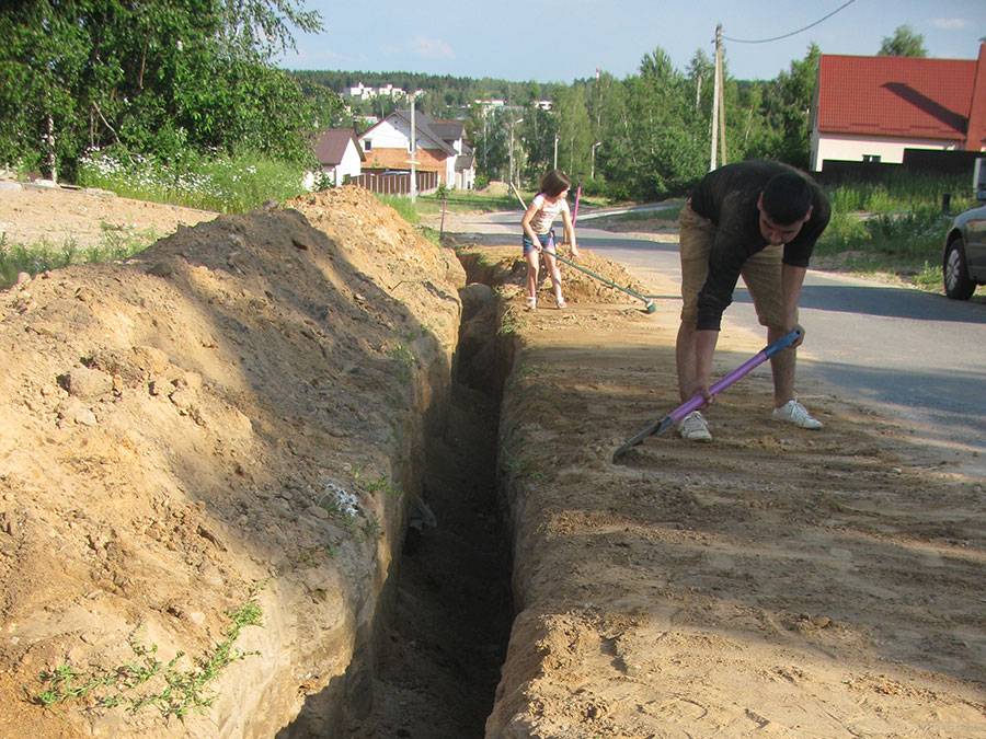 - отрывается траншея, а ее дно тщательно выравнивается и покрывается слоем щебня или гравия. Отрывая траншею, следует руководствоваться нормами, о которых мы уже рассказывали здесь;