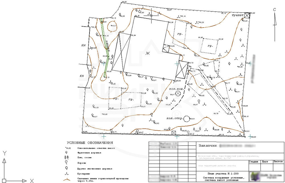 Примерный вид плана участка с детальным указанием всех имеющихся элементов