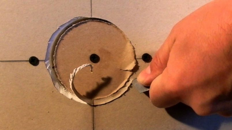 С помощью данных способов создается отверстие с не самым совершенным видом, а неровность его краев намного отягощает монтажный процесс. При этом с гипсокартоном работать, прилагая чрезмерные усилия, не допустимо, так как материал достаточно хрупок, легко идет на разлом. В связи с чем достаточно распространенной рекомендацией является применение для подобных работ специальной коронки по дереву (d – 6,7 см).