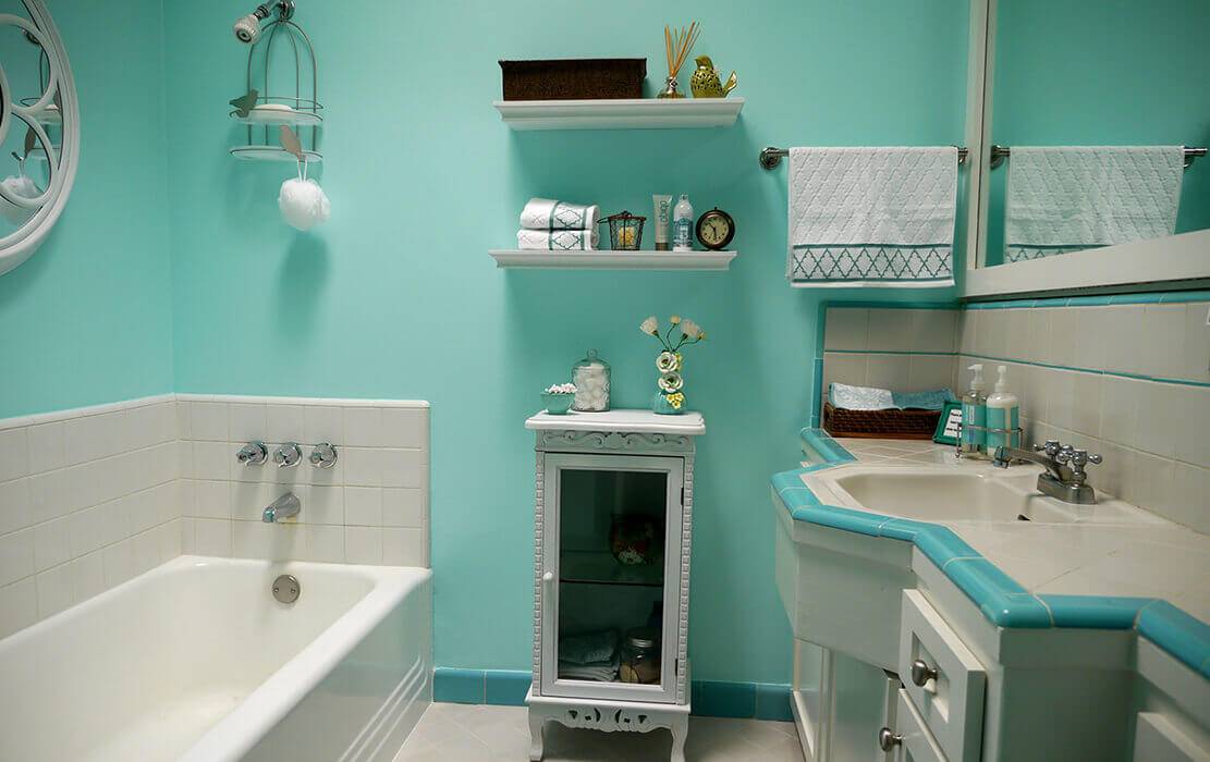 Благодаря краске интерьер ванной комнаты может заиграть совершенно новой палитрой.