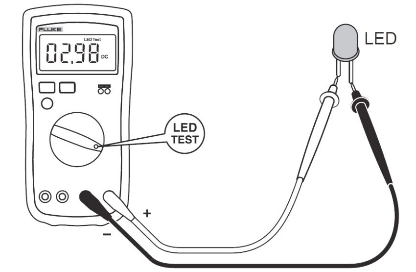 При помощи данного прибора можно определить не только полярность, а и работоспособность LED элемента. Измерения проводят в режиме – омметр. В современных моделях мультиметров есть встроенная функция – «тестирование диода».