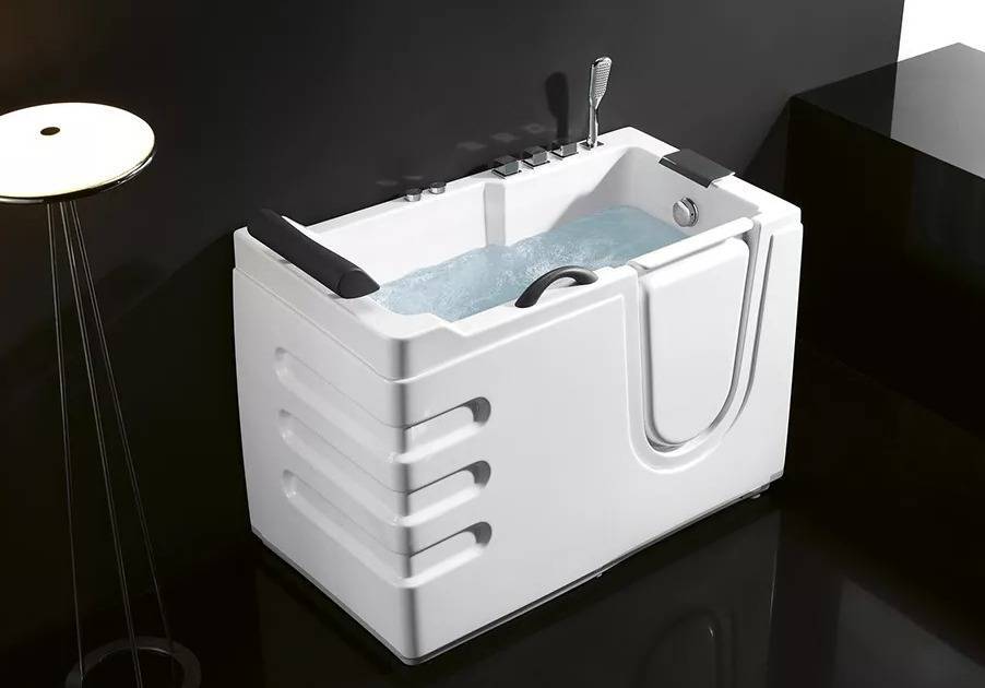 Для людей ограниченными возможностями изготавливаются специальные акриловые ванны, имеющие дверцу с одного из боков. Дверь по нижней части располагается примерно на уровне дна ванны. Благодаря чему не нужно перебираться через высокий борт, что существенно упрощает задачу пересаживания.
