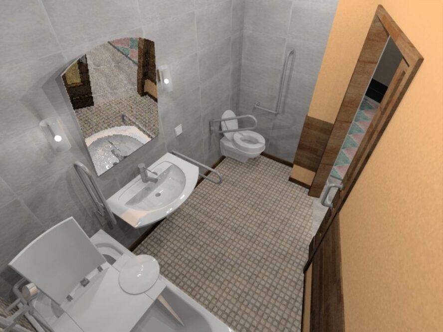 Дизайн-проект санузла, по всем правилам оборудованного для инвалидов-колясочников