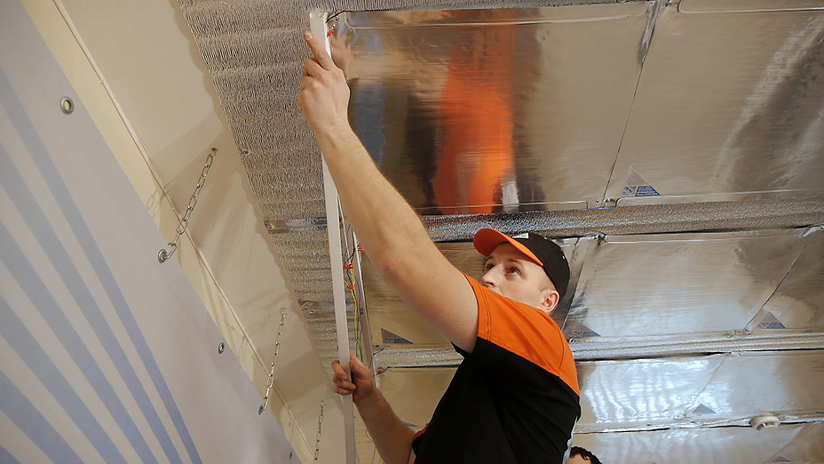 Потолочная установка инфракрасных плёночных обогревателей