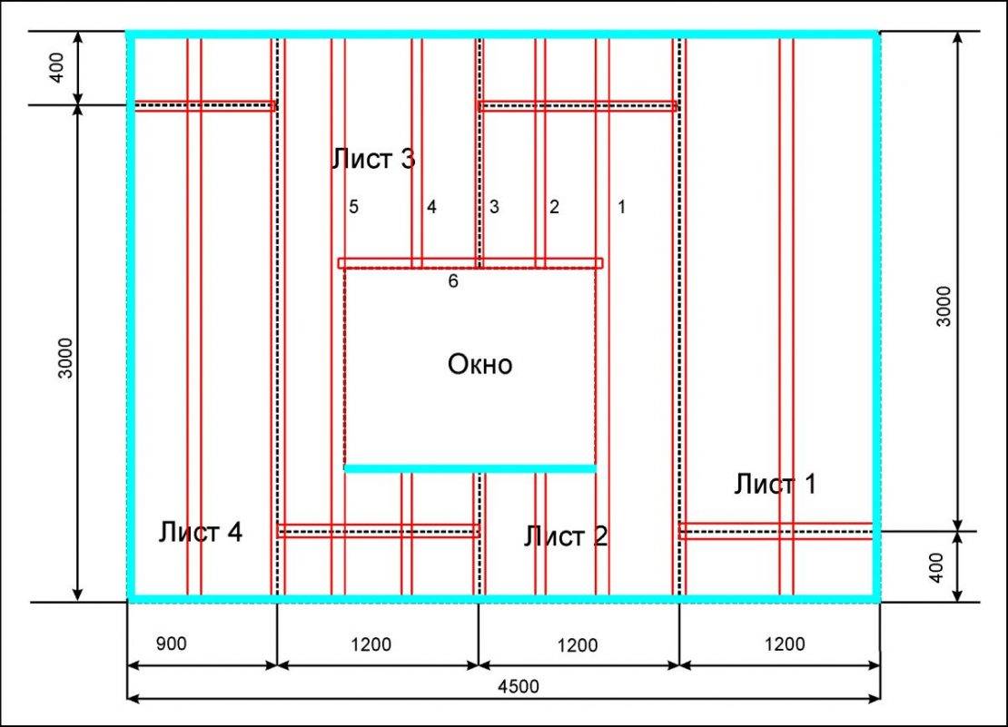 Сначала раскраивают листы строительным ножом. Метки наносят карандашом, не маркером — последний может просвечиваться даже сквозь слой шпаклевки.