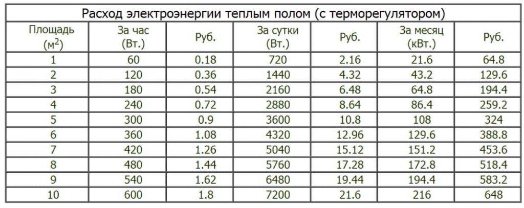 Номинальный и реальный расход энергии электрического теплого пола