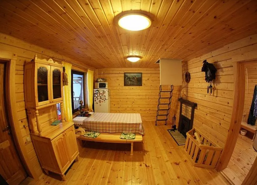 Комната отдыха в бане из брусаИсточник hr.aviarydecor.com