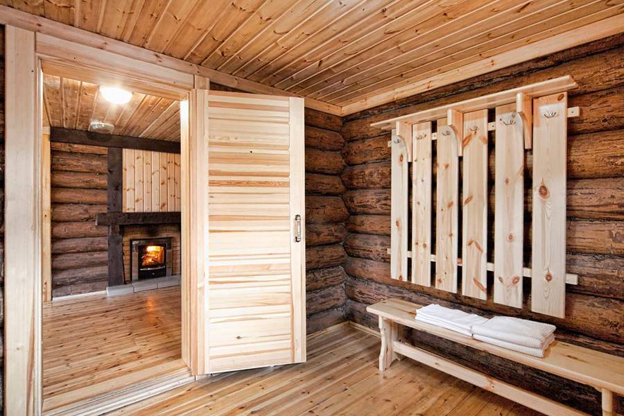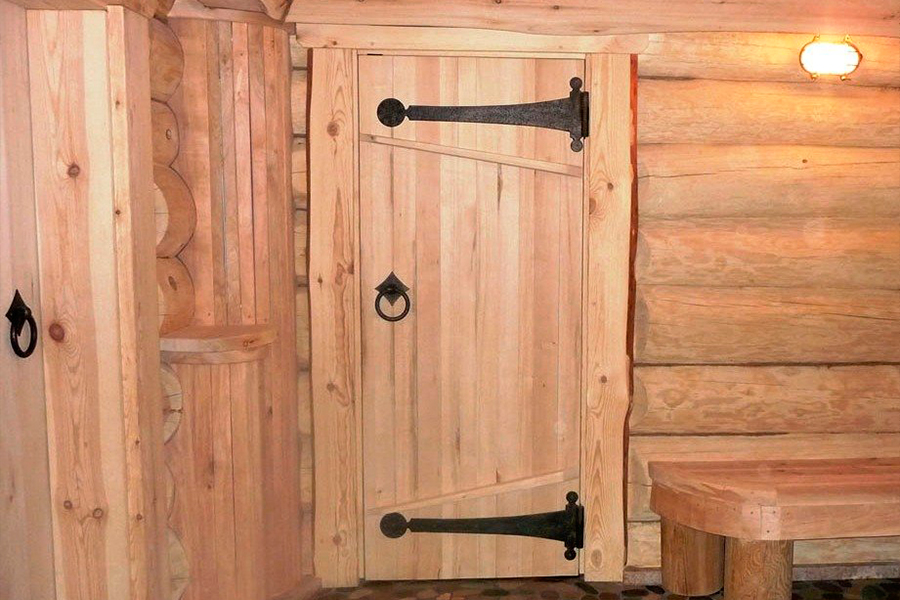 Дверь должна быть невысокой, чтобы тоже сохранять тепло. Если наружная входная дверь в баню обычно размером в 2 метра, то дверь в предбанник не должна превышать 160-170 см, а в ширину – 60-70 см.