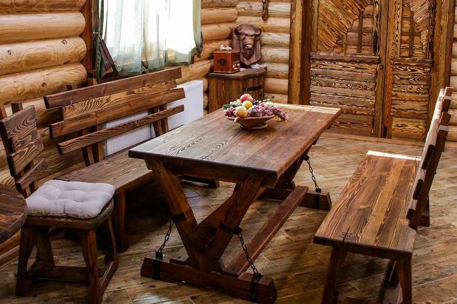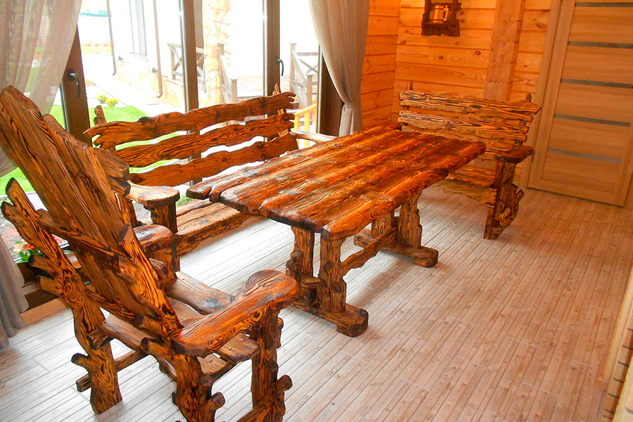 Мебель, как и все остальное, должна быть практичной и влагостойкой. Она должна выдержать высокую влажность в течение длительного времени, при этом не теряя своего функционала и привлекательного вида. Популярностью пользуются классическое дерево, мебель из ротанга или техноротанга.
