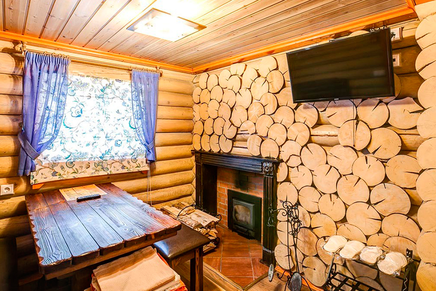 Традиционная баня из бревен долговечная, функциональная и не требует дополнительной внутренней отделки. Однако стоимость такой бани высокая из-за дороговизны бревен и сложного процесса сборки. Габаритные бревна также «съедают» площадь, как снаружи, так и внутри помещения.
