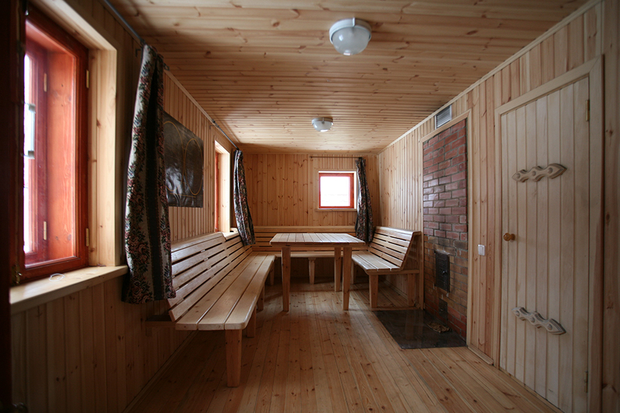 Материалы, которые берутся для обшивки парной, не должны содержать никаких сучков, не следует монтировать выступающие металлические детали – все ручки и держатели выполняются только из древесины. Даже полки изготавливают без использования гвоздей, так как любой предмет из металла в условиях высокой температуры очень сильно нагревается и может вызвать ожоги. Некоторые потребители отделывают бани глиной, кирпичной кладкой, соляной плиткой, лыком и камнем.