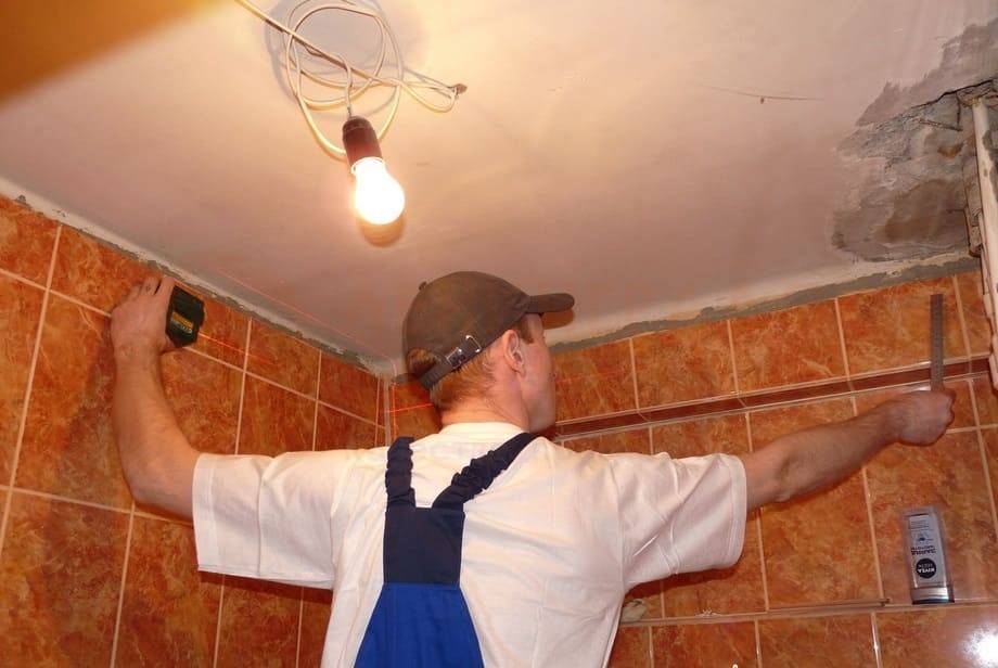 - Прежде чем заделать потолок в ванной необходимо произвести тщательные измерения имеющейся поверхности. Иногда даже большие отклонения, невидимые визуально накладывают определенные ограничения то, какой выбрать потолок в ванной.