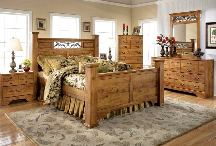Основные элементы мебели спальни в стиле кантри, ‒ кровать и комоды, должны быть выполнены из дерева