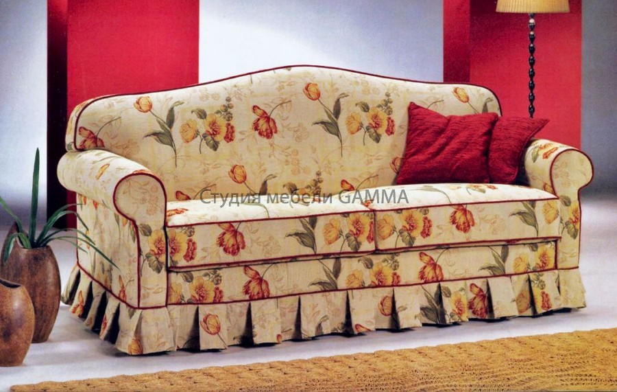 Также подойдут старые кожаные изделия с характерными потертостями и плетеные гарнитуры. Тканевые диваны и кресла могут быть однотонными, но лучше выбирать модели в клетку, цветочек, под лоскутное шитье.