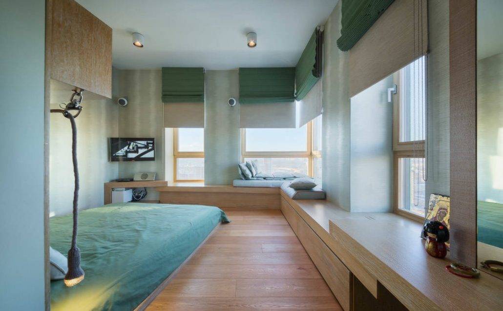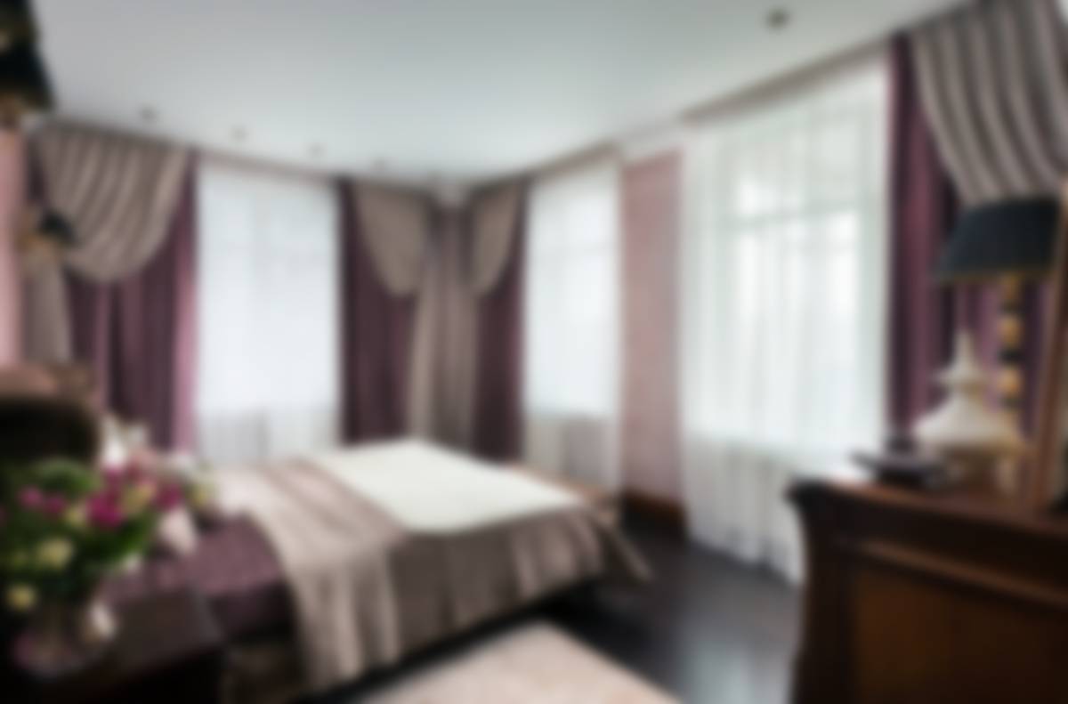 Исходя из дизайна спальни, они могут представлять собой одну широкую штору, полностью закрывающую весь проем окна или же состоять из нескольких штор.