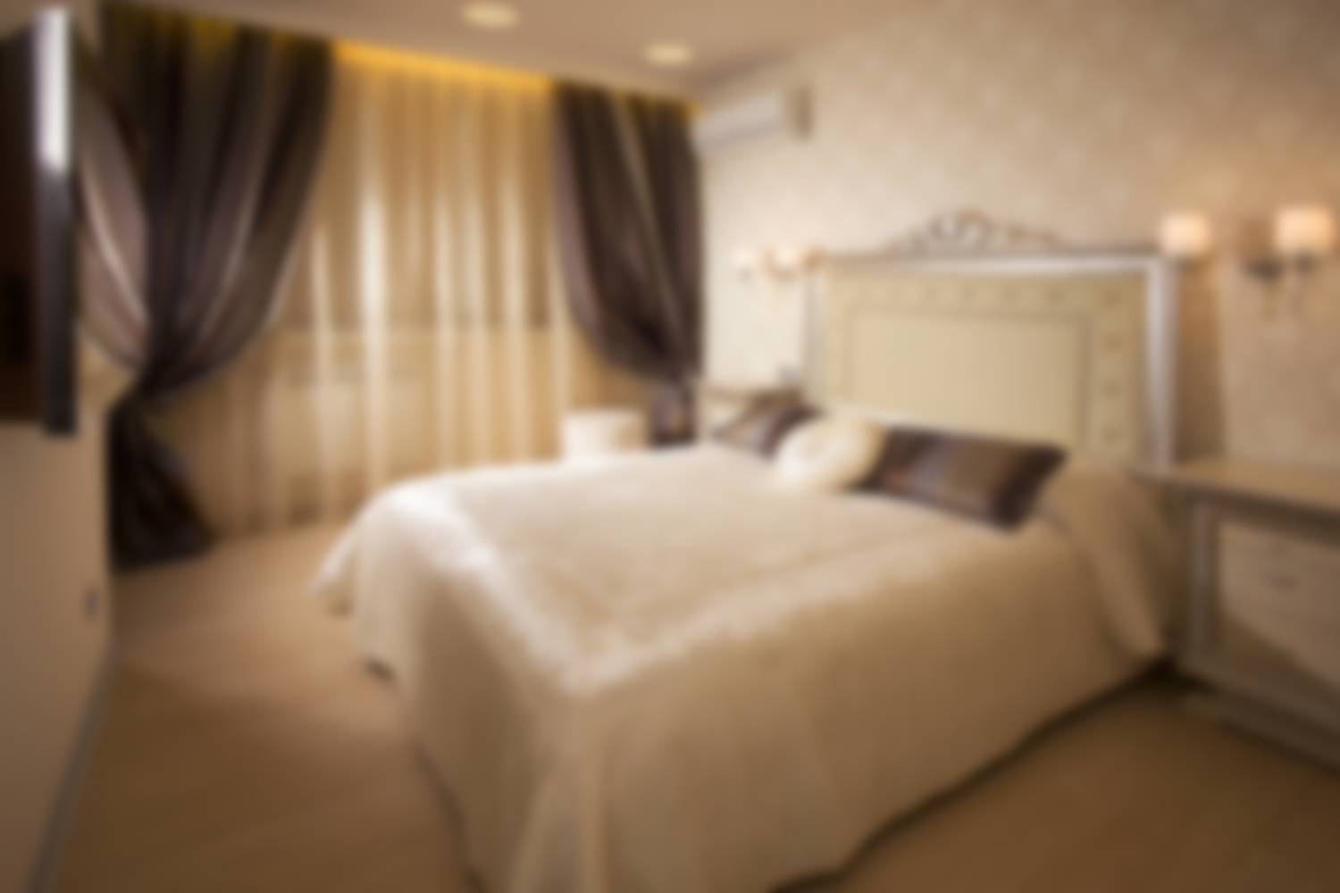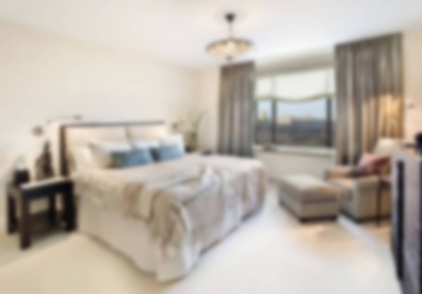 Портьеры также необходимо выбирать однотонные и из плотных тканей, так как нельзя забывать и о практичности, ведь эта спальня.