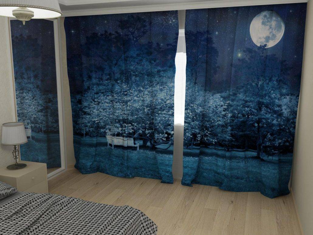 Современные шторы в спальню 2018 с фотопечатью