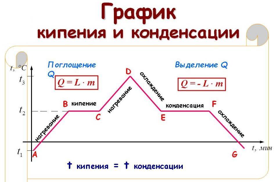 Если просто, то основой работы любого современного кондиционера являются процедуры кипения (с поглощением тепла) и конденсации (с выделением тепла). При указанных процессах происходит поглощение/выделение тепла согласно изображенных на графике формул. Где Q является количеством тепла, L — удельная теплота парообразования, а m обозначает массу вещества
