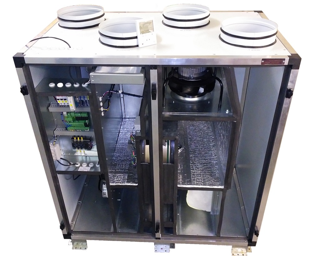Данное решение удачно реализовано у производителя т.м. Naveka в установках серии Node3. Установки имеют систему защиты от обмерзания, встроенную автоматику и пульт ДУ. В исполнении Vertical — установки имеют теплошумоизоляцию из минеральной не горючей ваты толщиной 50 мм, и возможность наружного (уличного) монтажа и эксплуатации.