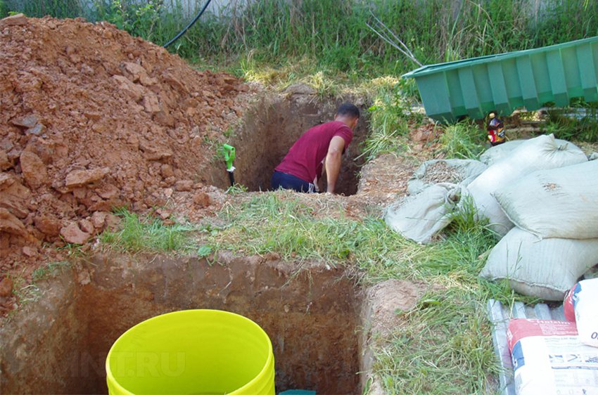 Для укладки наружных труб и установки очистного оборудования на первом этапе выполняют все земляные работы. Точно выдерживайте заданные расстояния и уклоны, а при организации почвенной доочистки — толщину и площадь слоёв засыпки. В одиночку эти работы выполнить сложно, а иногда и просто невозможно. Например, для установки тяжёлого септика или станции биологической очистки, монтаже бетонных колец и т. д. может потребоваться спецтехника.