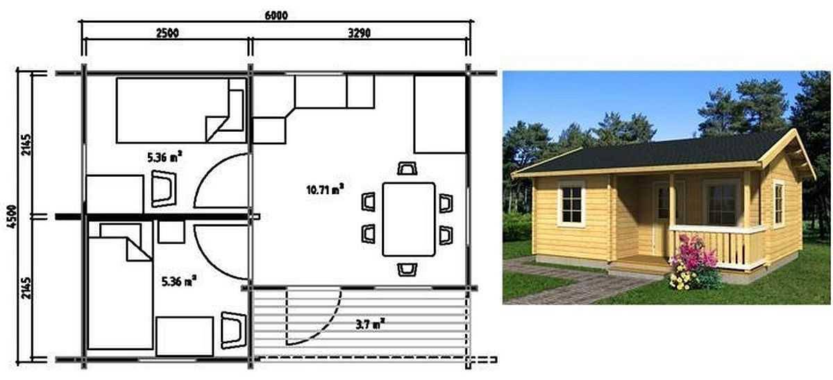 Небольшой дачный дом 6*4,5 с верандой на отдельном фундаменте