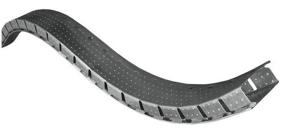 - Арочные профили. По технологическим особенностям этот тип профиля идентичен двум предыдущим видам, однако он имеет усиленную перфорацию с наличием множества отверстий и разрезов. Это дает возможность изгибать его в нужном направлении, формируя каркас сложных конфигураций