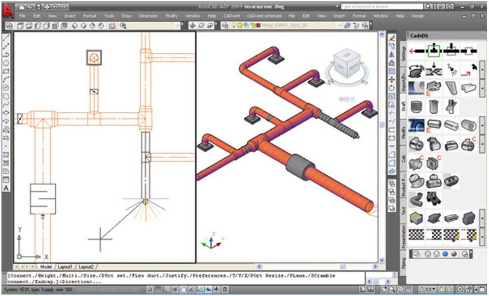 Программа для проектирования вентиляции cadvent является своеобразной надстройкой для рисования вентиляционных систем, созданной на графической платформе Avtocad.Эта утилита содержит в себе полный набор инструментов для черчения схем, имеет мощные возможности для ведения необходимых расчетов, создания трехмерных моделей, презентаций и пр.