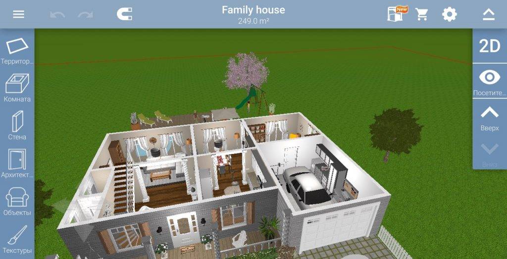 В этом интересном приложении можно создавать проекты интерьера. Причем на выбор имеется как двумерный, так и трехмерный формат. И из одного формата можно переключиться на другой, не потеряв созданного проекта. Такой функционал по большей части характерен для дорогих профессиональных программ.