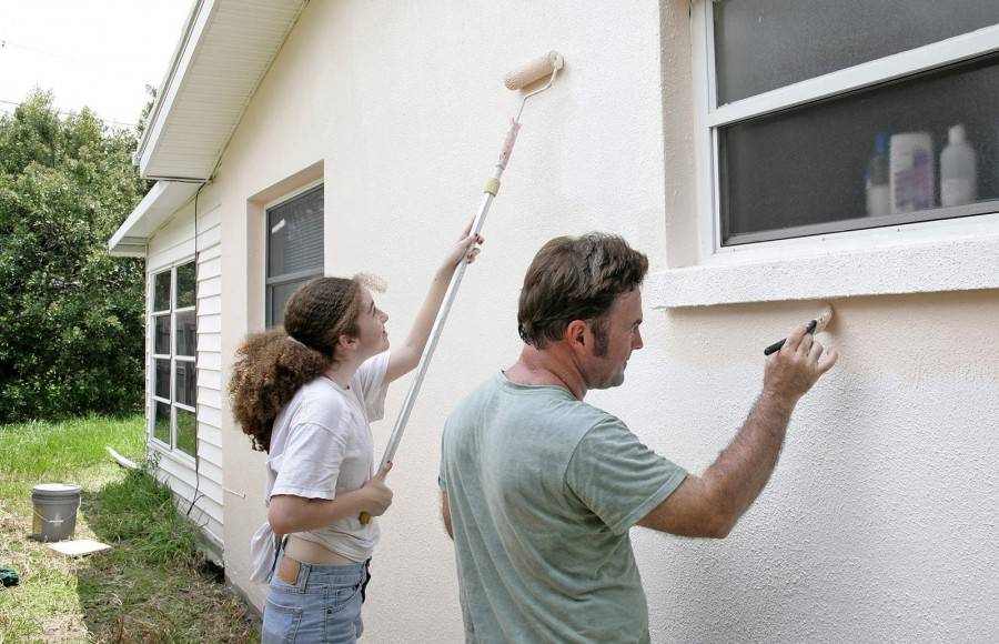 - Краска для наружных работ подходит для отделки фасадов домов, стен хозяйственных помещений, скульптур и других архитектурных форм.