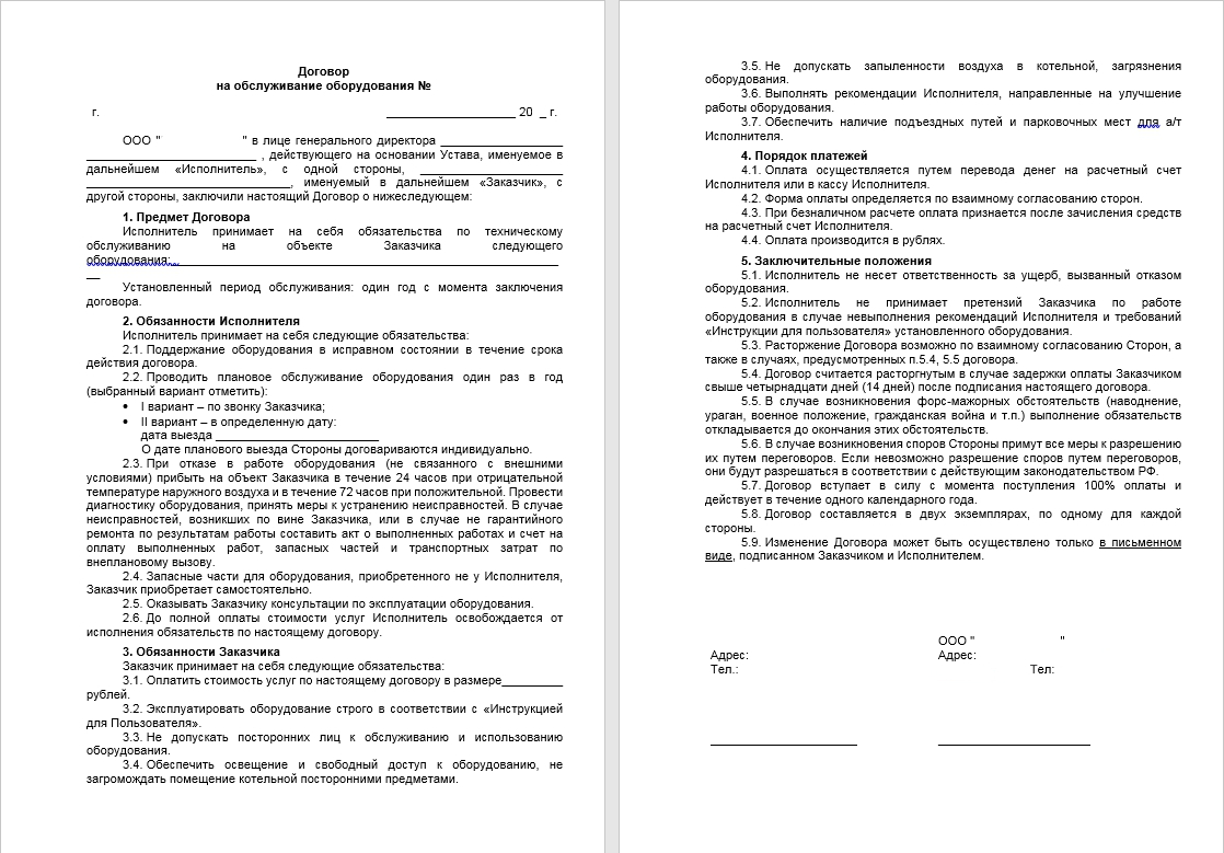 Что входит в перечень работ по договору на техобслуживание газового оборудования: