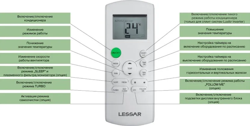 Также возможно произвести все вышеперечисленные настройки на пульте и после этого направив пульт на кондиционер нажать кнопку «ON».