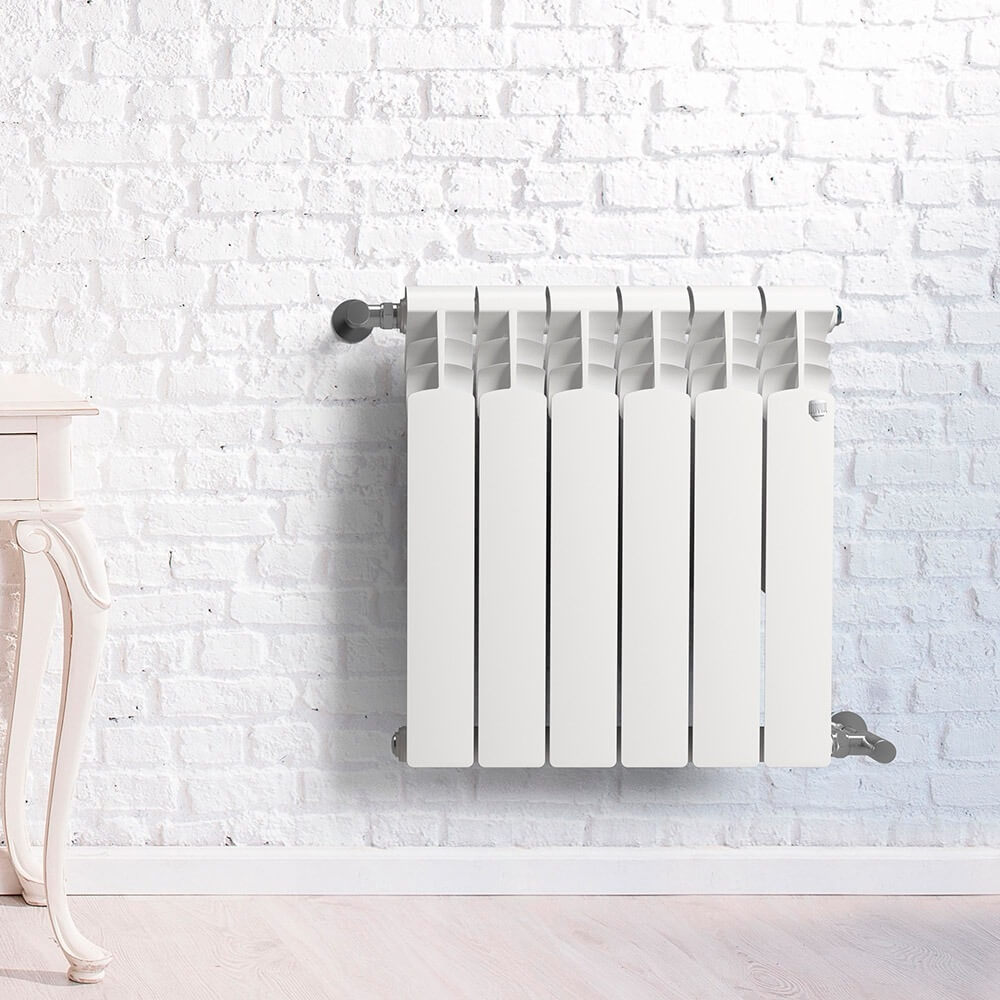Алюминиевая оснастка биметаллических радиаторов быстро реагирует на изменение температуры, тем самым обеспечивая эффективную теплоотдачу. Соответственно требуется меньшее количество теплоносителя, чем, например, при использовании чугунного радиатора. Эта особенность позволяет снизить габариты конструкции, сделать её более изящной, не сокращая тепловой поток.