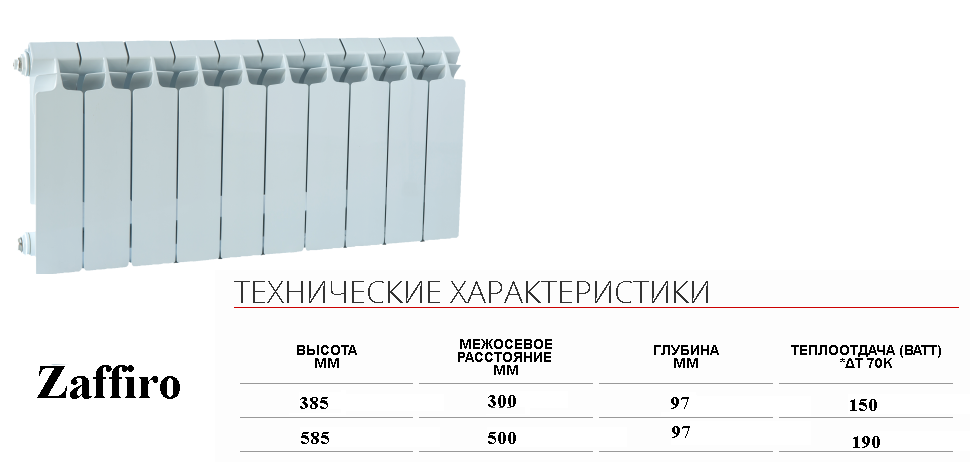 Для примера приведем характеристики, которыми обладает одна из самых востребованных моделей биметаллических приборов отопления – радиатор sira rs 500: