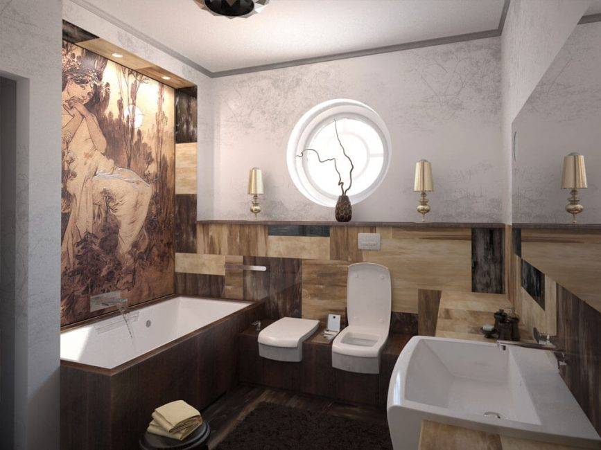 - Этнический, морской стиль – можно выбирать для них ванны округлой формы.