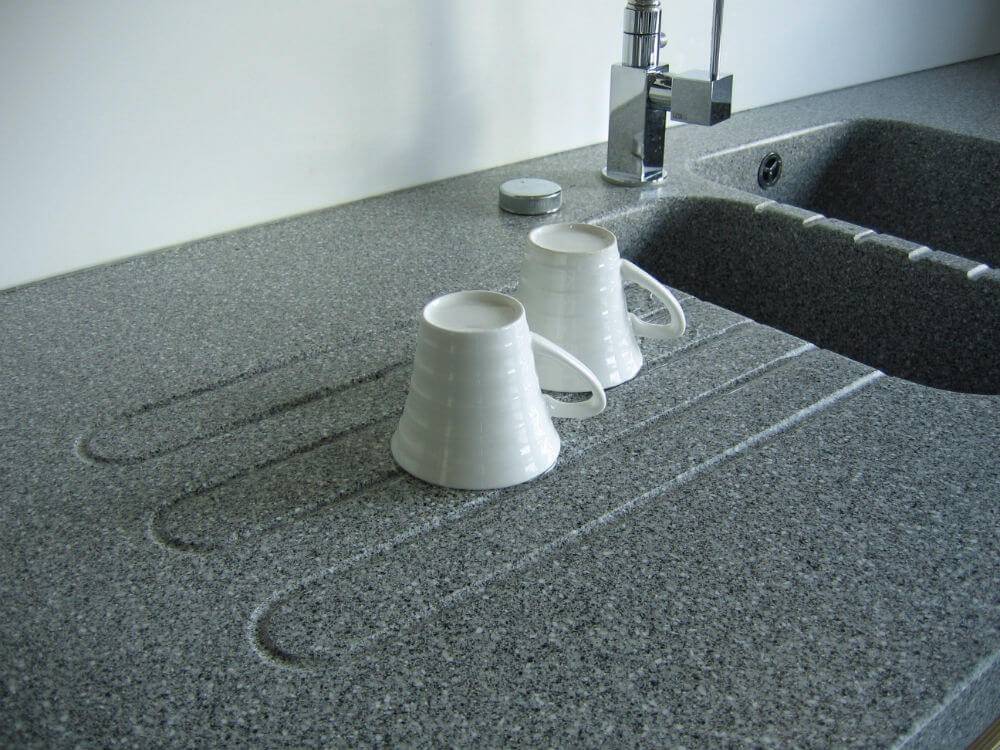 Чтобы на поверхности не скапливалась грязь и застывший жир, достаточно каждый день протирать её губкой со средством для мытья посуды. Жёсткая вода также способна сделать поверхность камня менее привлекательной — через время на ней появляется накипь и налёт. Чтобы от него избавиться, один раз в месяц на поверхность мойки и столешницы следует наносить специальные средства от накипи. Оставьте их на полчаса и тщательно смойте.
