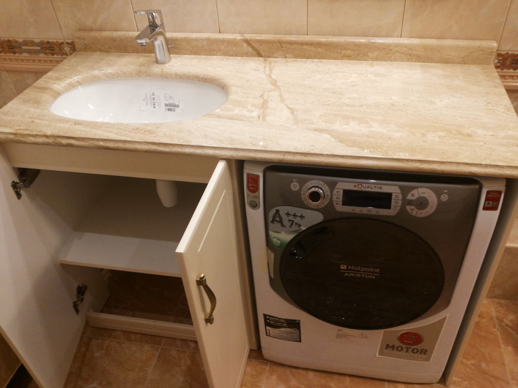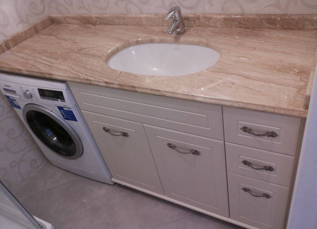 Тумба с раковиной под стиральную машину с мраморной столешницей